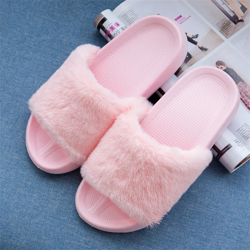 Elles sont douces et confortables ces Claquettes Fourrure à Lanière Rose !